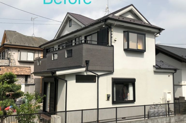 H様は10年に1度塗替えを考えており、弊社にお電話にてご連絡をいただきました。弊社は現地調査、見積もり等無料でやらせていただいており、屋根など高い所はドローンを使用し、その場で写真を撮りお客様に確認してもらっております。